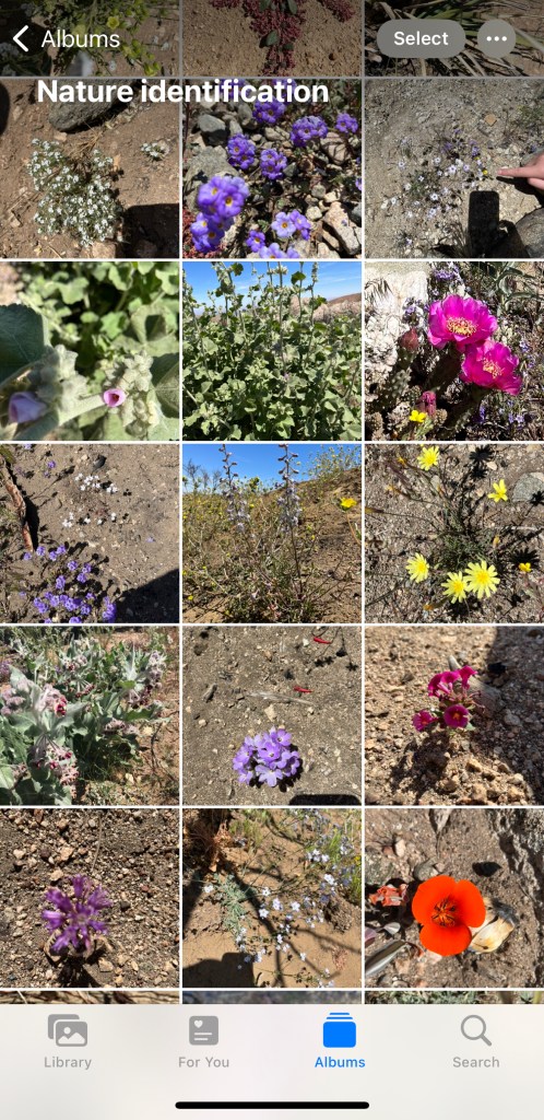 While we are on our walks I don’t have an agenda or object lesson prepared. I try to make it low key and enjoyable, teaching the boys how to enjoy nature by my example. I stop to inspect interesting flowers, trees, mosses, etc. I bring binoculars to look at birds we may see. It has been fun to watch the boys start to imitate this and point things out for me. When we don’t know what we’re looking at we take pictures so we can identify it later. I have created an album in my photo app for “nature identification.” I label the picture in the album with where we found it and what we think it is. It has been fun to see this collection grow. We also use it as reference when we find something we know we’ve seen before but can’t remember it’s name.
