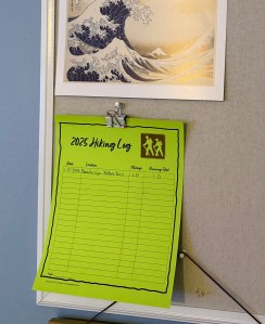 The first year we logged our hikes, we made it a challenge to hike 50 miles. We only got to about 30. So now we are just going to keep track of which hikes we do. I have created two versions of the log – one to keep track of cumulative milage and one to just log miles and time spent.