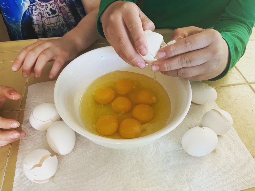 I did at least have a little sucess in the “handicraft” category to celebrate. About 2 or 3 times a month we have been cooking scrambled eggs and (refrigerator) biscuts for lunch. And in the last month they have been able to do the entire process without me assisting (beyond staying in the kitchen and reminding the of the next step.) They love having egg sandwiches for lunch, so they have been motivated to learn. I am thinking I will teach them a simple dinner dish, like frozen meatballs and jarred marinara sauce next. It is so hard to teach them to cook because it is so much easier to do it myself. But I know it is important, not only to teach them life skills, but for their own self-confidence building.