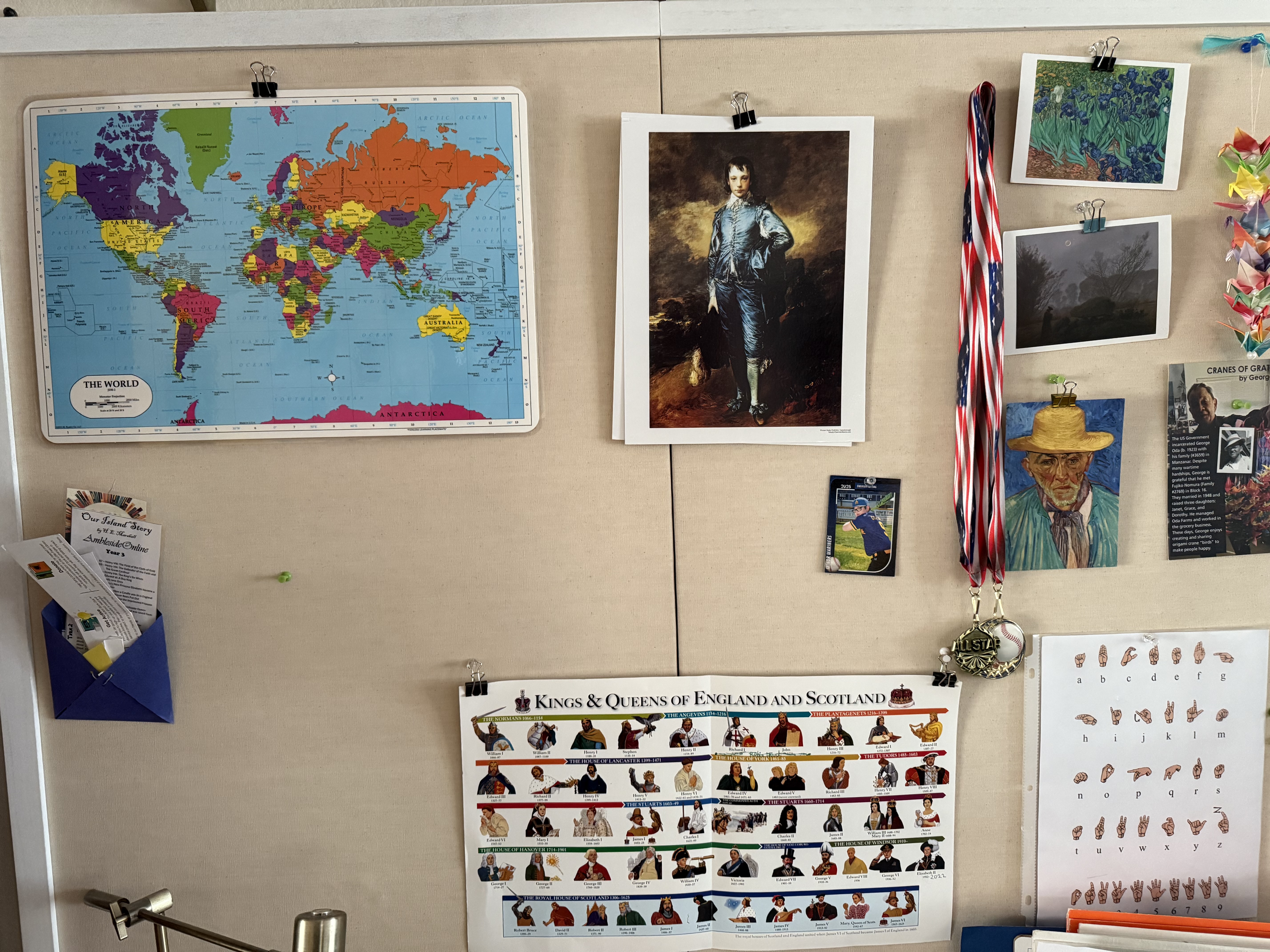 For Artist Study, we did Dürer and Savage as planned. In Term 3 I did end up doing tge Gainsborough study. We have visited The Huntington many times, but it was fun to see how the boys enteracted with the Gainsborough and Reynolds portraits this time after the study. Every week after looking at the prints, I hang them on the bullitin boards above the boys desk so they can look at them. That way we always have the two most recent prints hanging in the schoolroom.