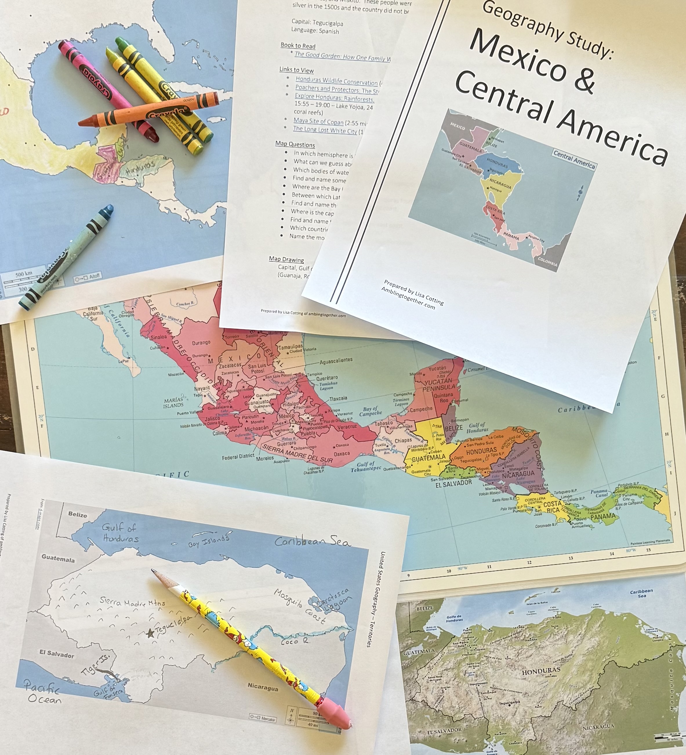 Guides for a geography study of each state, focusing on mapping the physical features, reading a picture book or two about the culture, history, or nature of the state, and watching several videos to compliment these topics.